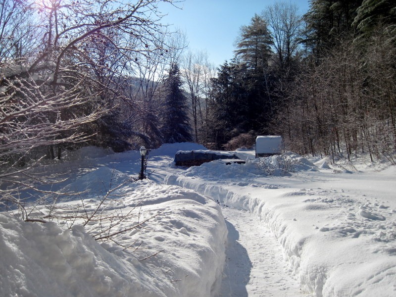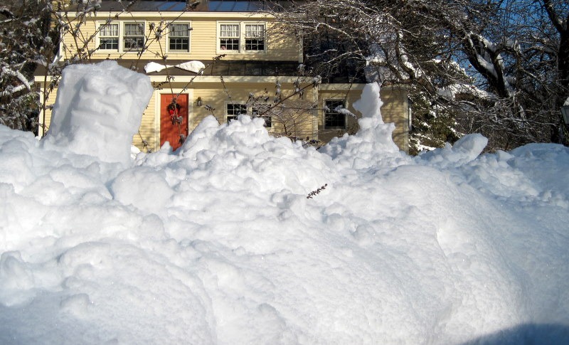 While I clearing around the car, all of the ice and snow on the metal roof suddenly exploded with an avalanche that impaled or pounded the area in front of the house with a vengeance. In addition to providing yet another example of the tipping point phenomenon, it also reminded me of why I don’t allow the animals out when I’m cleaning up after a storm when the temperature’s rising. And why I’m nowhere near the roof at those times, either!