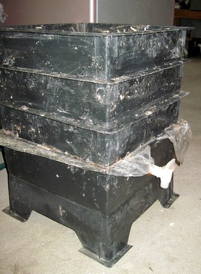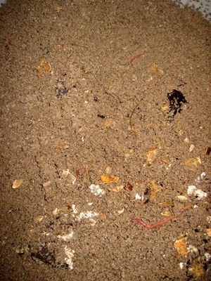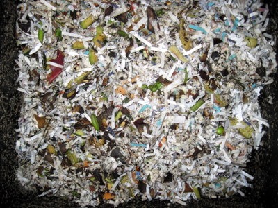 The pictures below show the difference between the mixture of fresh garbage and shredded paper in the top floor, its semi-converted state on the 2nd, and then the final product when most of the worms are done with it. Eggshell fragments remain which are a good source of nutrients for the soil. Not sure about those pieces of avocado peel but I imagine they’ll eventually decompose when added to the soil.