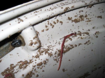 Here’s the scene of the meltdown post-clean-up. In the second picture you can see one adult worm and a couple babies I missed, but then later liberated.