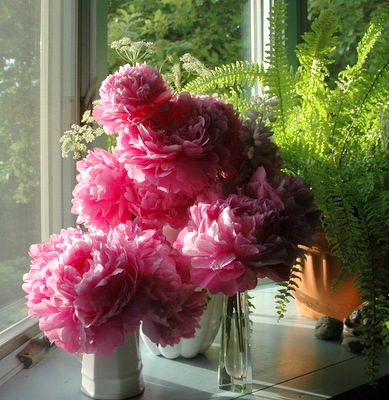 Below are the peonies, a picture taken in one of the rare bursts of sunlight that week.