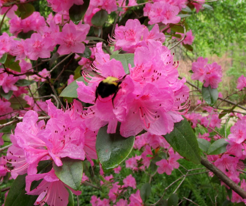 Nonetheless to to end this on a more aesthetically pleasing note, here’s a picture of a highlight in an otherwise lame floral display here this spring. The bee was a an unexpected but welcomed surprise.
