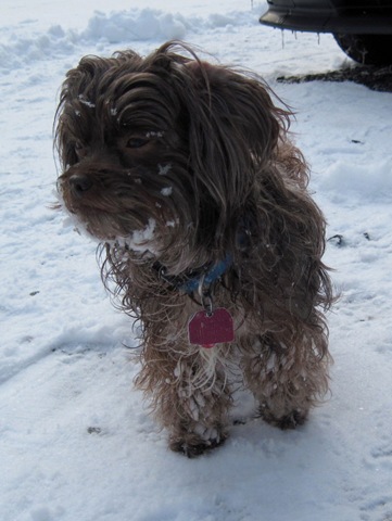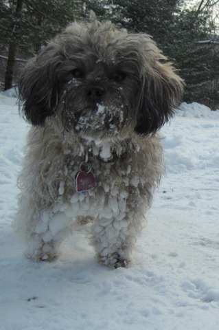 One of the things I’m doing post-holiday is digging out from a New Year’s Eve through January 3rd snow. There wasn’t a lot of snow, but it was constant. And it was the perfect snow to stick to certain dogs’ fur and give rise to thoughtful expressions: